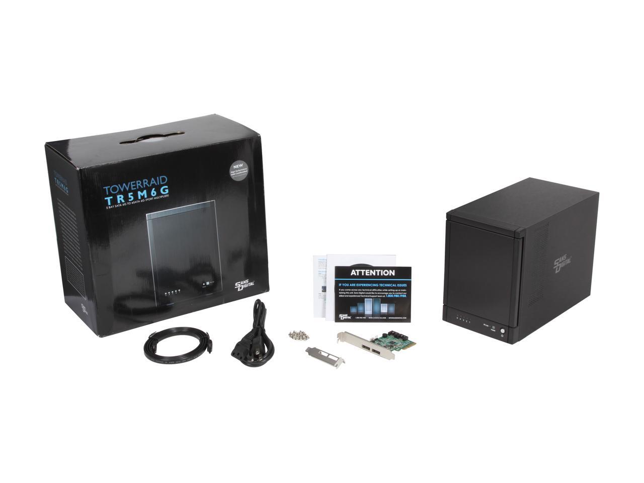 SANS DIGITAL TowerRAID TR5M6G 5-Bay eSATA 6G Port Multiplier RAID Tower w/ 6G PCIe x4 Card