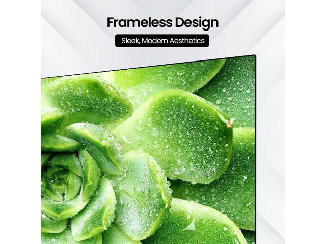 - Modern, Frameless Design A sleek, bezel-less look that complements any space while maximizing the immersive viewing area.