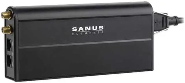 The Sanus Elements ELM205 is a flat-panel HD power conditioner and surge protector that features ClickFit compatibility to attach directly to Sanus LT25, LL22 and LMT15 wall mounts. It sits just 1.31" from the wall, making it perfect for use behind flat-panel TV wall mounts and furniture. 2,700-Joule surge protection shields valuable electronics from damaging power surges. Dual-stage EMI/RFI filters eliminate noise from 20-50 dB (100 kHz-1 MHz) for superior quality signals.