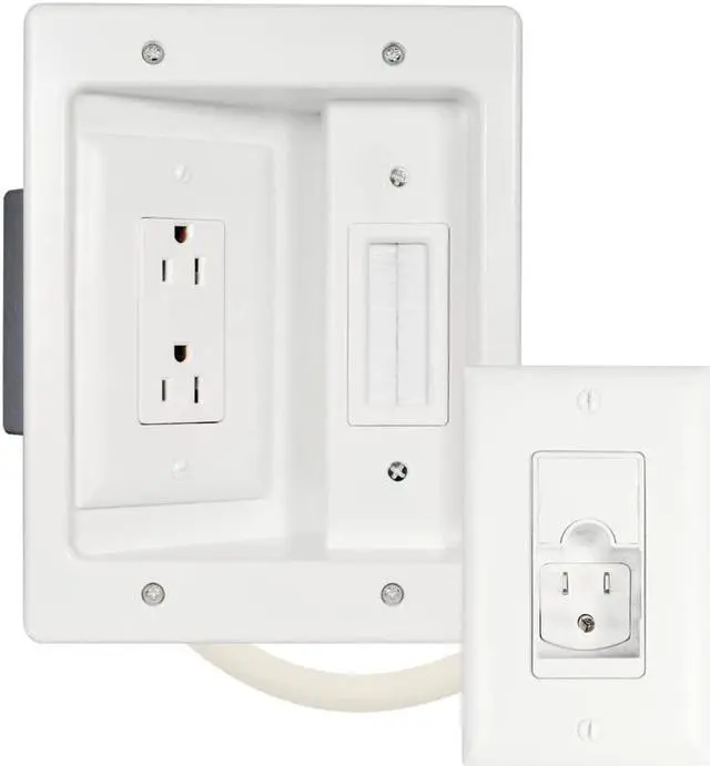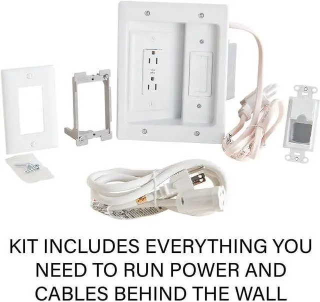 Sanus SA-IWP1-W1 In-Wall Power and Cable Management Kit (2021) - Extend Power From An Existing Wall Outlet To Behind A Wall Mounted - Run Cables Behind The Wall - Works With Any TV Power Plugs - Powers Multiple Devices - Output Module With 6FT Prewired Cord, Power Input Module, Drywall Bracket, 6FT Power Cord, Cut Out Template Included - ( 8.75"W x "D x 10.25"H ) - (White)