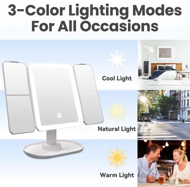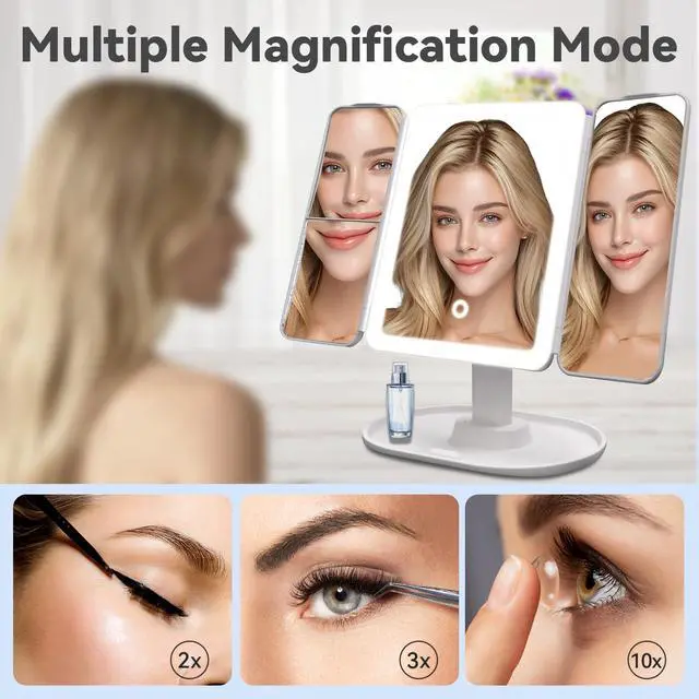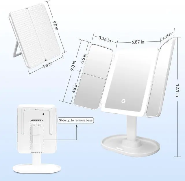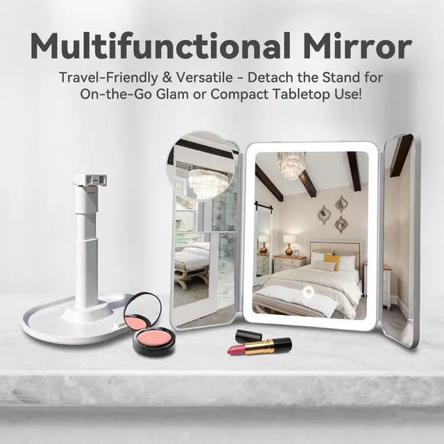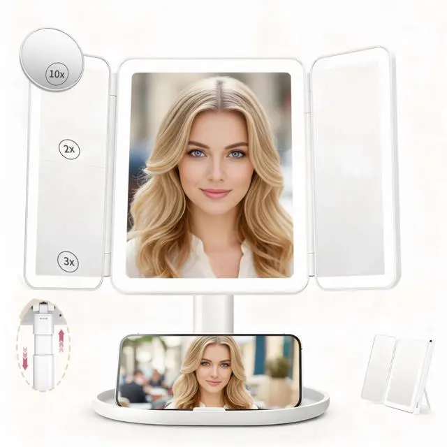 | Trifold Mirror for Travel | Portable and Handheld | Storage Function | Height Adjustable |