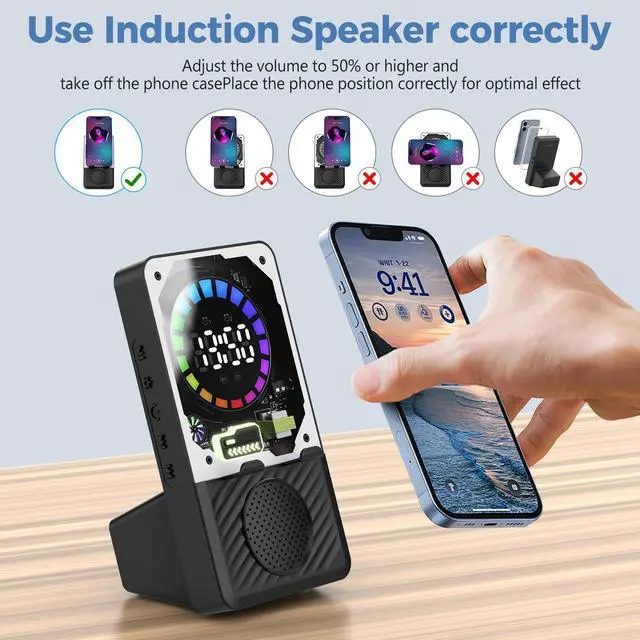 Included Inductive Wireless Speaker x 1, USB Charging Cable x 1, Instruction Manual x 1, Package Box x 1.