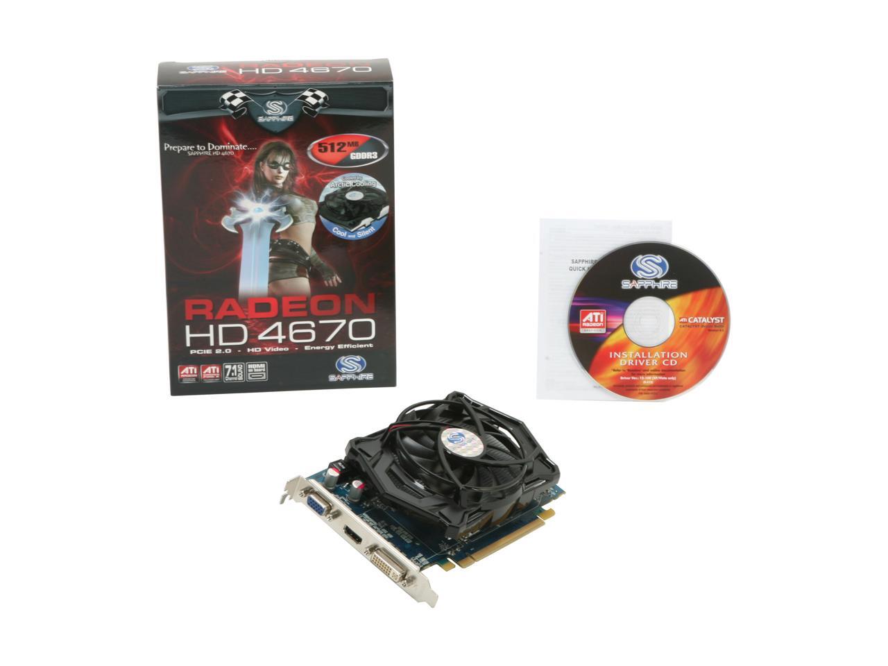 SAPPHIRE Radeon HD 4670 DirectX 10.1 100295HDMI 512MB 128-Bit GDDR3 PCI Express 2.0 x16 HDCP Ready CrossFireX Support Video Card