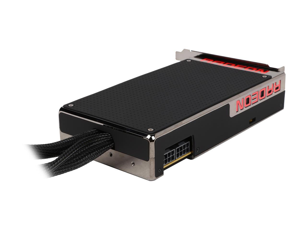 In addition to impressive performance, the R9 Fury X comes with industrial styling that looks as great as the card performs. A closed loop liquid cooling solution keeps the GPU cool and at whisper-quiet noise level for immersive gaming. An illuminating "RADEON" logo lets you show off your high end component, and the GPU Tach activity indicator gives you quick view of the GPU load level. Moreover, with a slim, compact form factor roughly 7.5" in length, this card can easily fit into cases of various sizes and shapes, thus your next gaming powerhouse could be cute and space-efficient like never before.