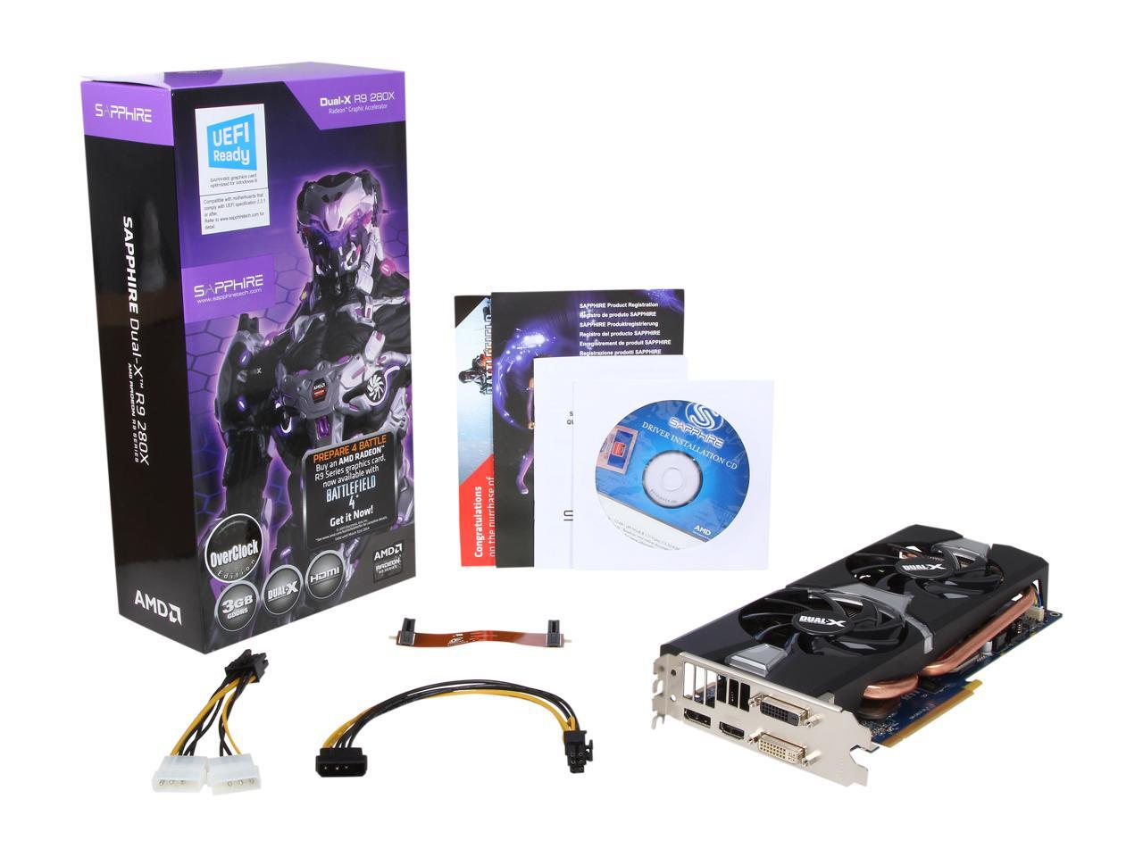 SAPPHIRE DUAL-X Radeon R9 280X 3GB GDDR5 PCI Express 3.0 CrossFireX Support Graphics Card 100363BF4-2L