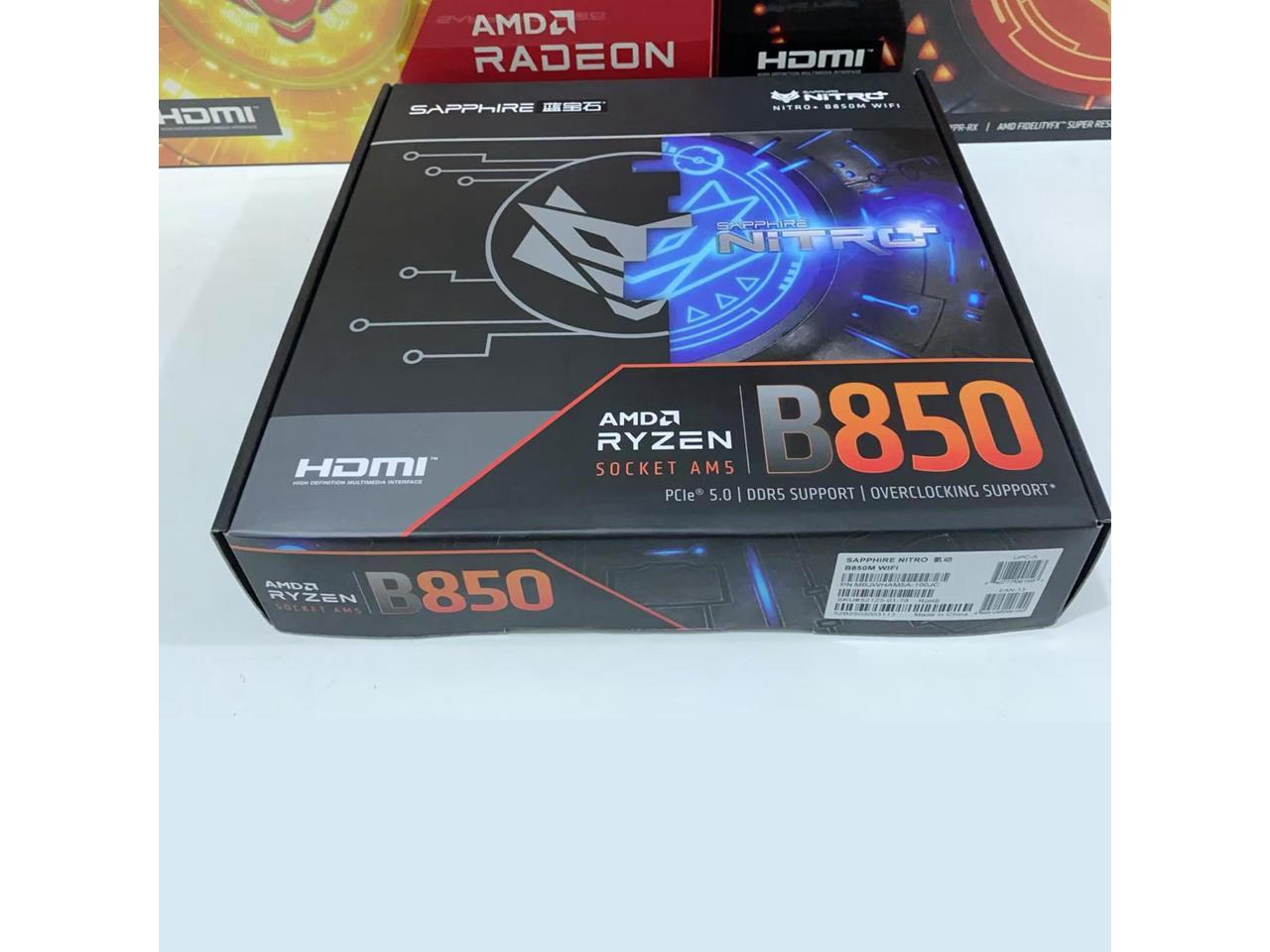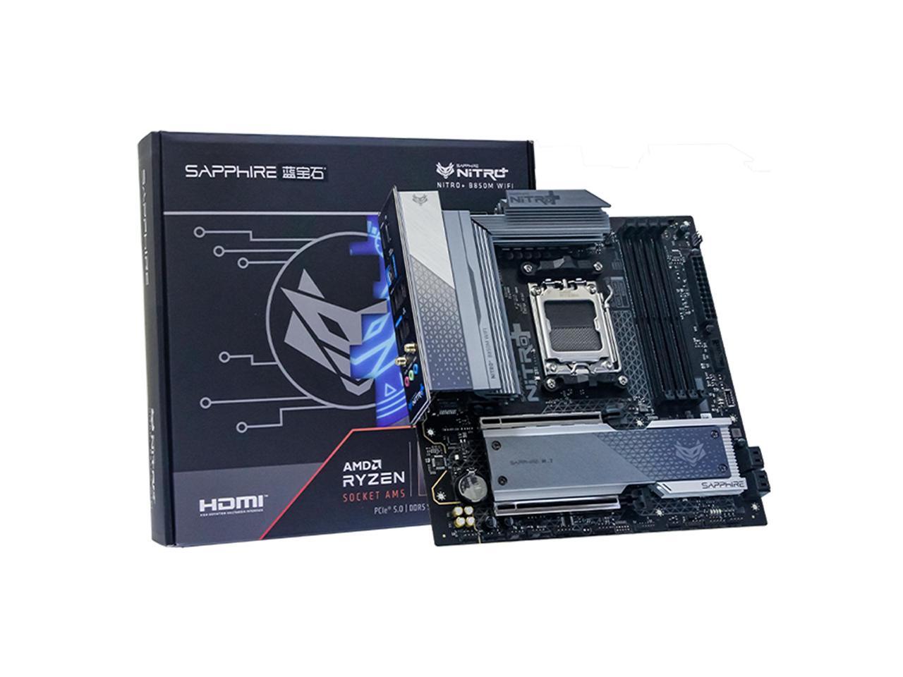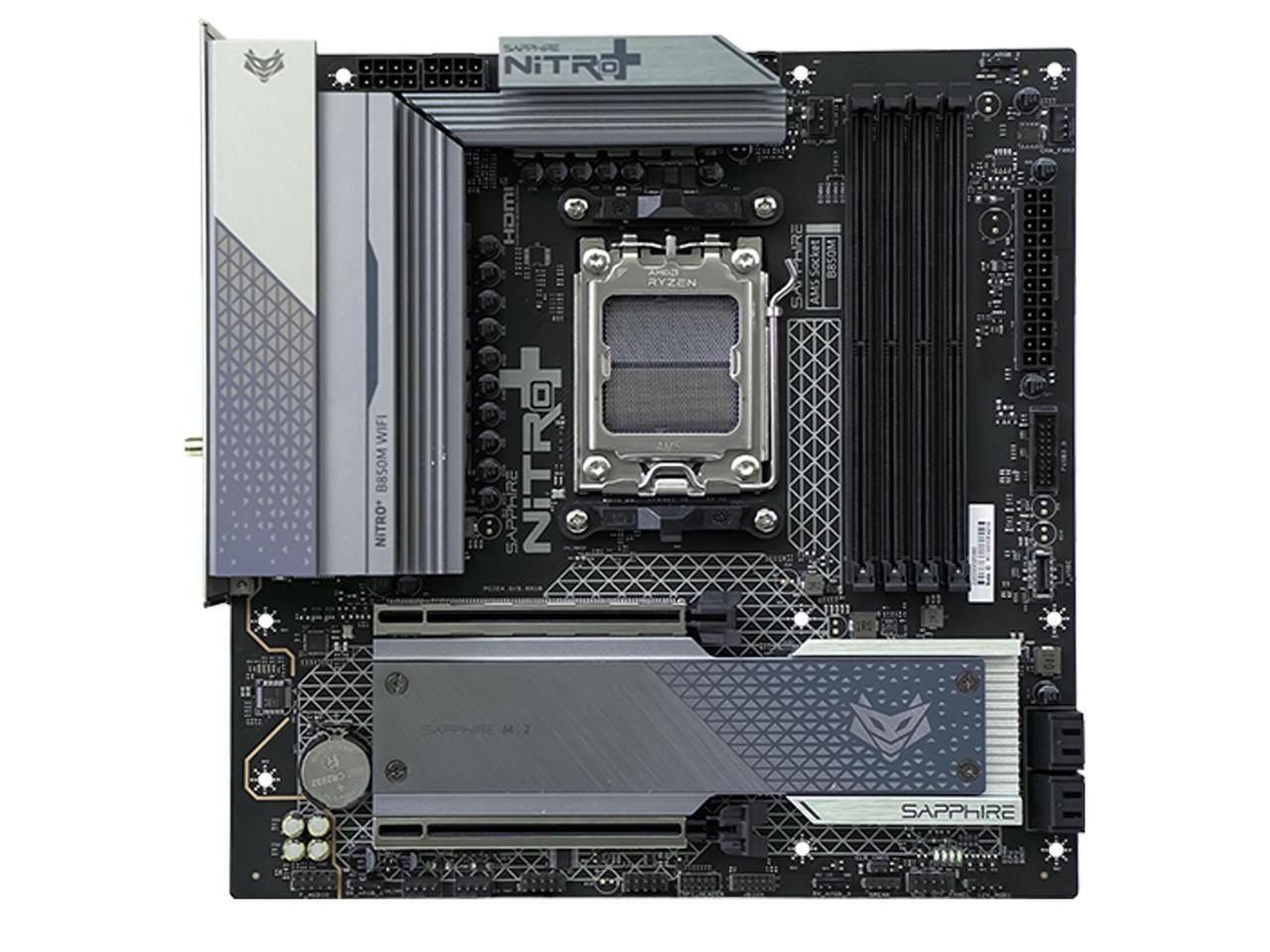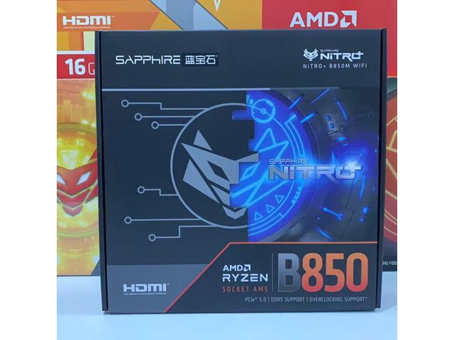 Sapphire Tech NITRO+ B850M WIFI Motherboard, Desktop Motherboard, for AMD Razorback 9000/8000/7000 Series Processors, WIFI6+ Bluetooth 5, AMD B850, AM5, 1*PCIE5.0x16,1*PCIE4.0x4, 1*HDMI, 1*DP