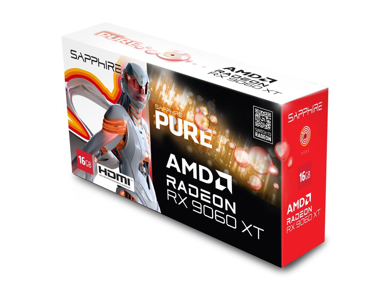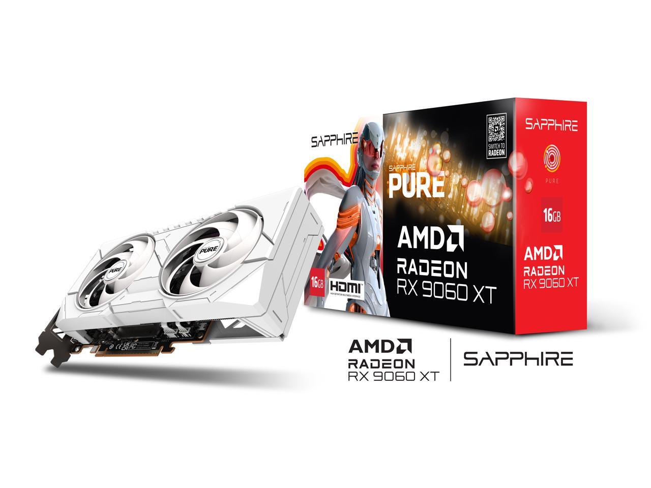 SAPPHIRE PURE Radeon RX 9060 XT 16GB GDDR6 PCI Express 5.0 x16 ATX Graphics Card 11350-02-20G
