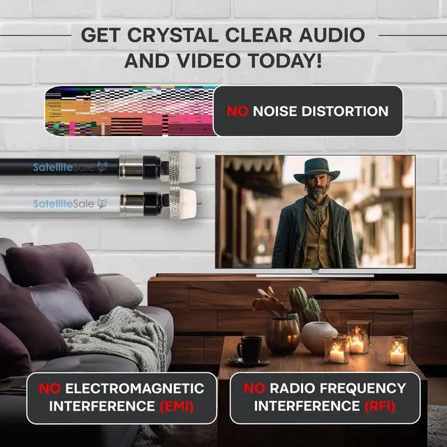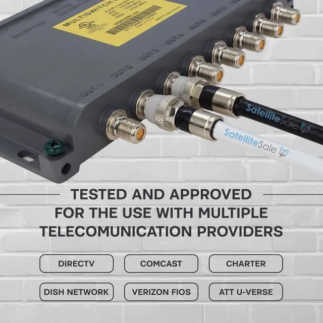 SatelliteSale Digital 18 AWG 75Ohm RG-6/U Coaxial Cable Universal Wire with F-Type Connector Indoor/Outdoor Black and White Cord can be easily connected to all of your devices, transmitting high-frequency electrical signals with minimal losses. This cable works for all satellite and cable providers, including DirecTV, DISH, Comcast, Cox, Time Warner Cable, Charter Spectrum, Broadstripe, Optimum, Mediacom, Verizon Fios, and off-air antennas to watch your favorite movies and tv shows on a big screen. Our Coaxial cord can be used in both commercial and residential setups. We offer different cable sizes, including 3 feet, 6 feet, 10 feet, 25 feet, 50 feet, 100 feet, 200 feet long cables. The selected table will be a perfect cost-effective option regardless of the size. Every Digital RG-6/U Coaxial Cable we sell is covered with a durable PVC jacket to protect it from unwanted bending damage and increase its durability. Moreover, F-type connectors will not break, pull off, lose signal or become loose over time. Both shielding elements make our cord waterproof using a redundant double seal at each end of the connector. Enjoy the clarity of the signal without any distortion and signal loss, even at extended lengths.