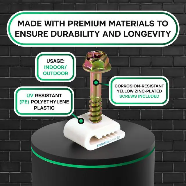 Our Single Ground Screw White Clips were designed to keep your electrical, power, ground, and ‘messenger’ cables safe. The design and PE UV material are used to make our clips grip them tightly without causing damage. Moreover, they can't cause electrical shorting or interference you may notice with staples or metal clips. Pre-installed corrosion-resistant zinc-plated screws are made to be durable and easy-to-install.