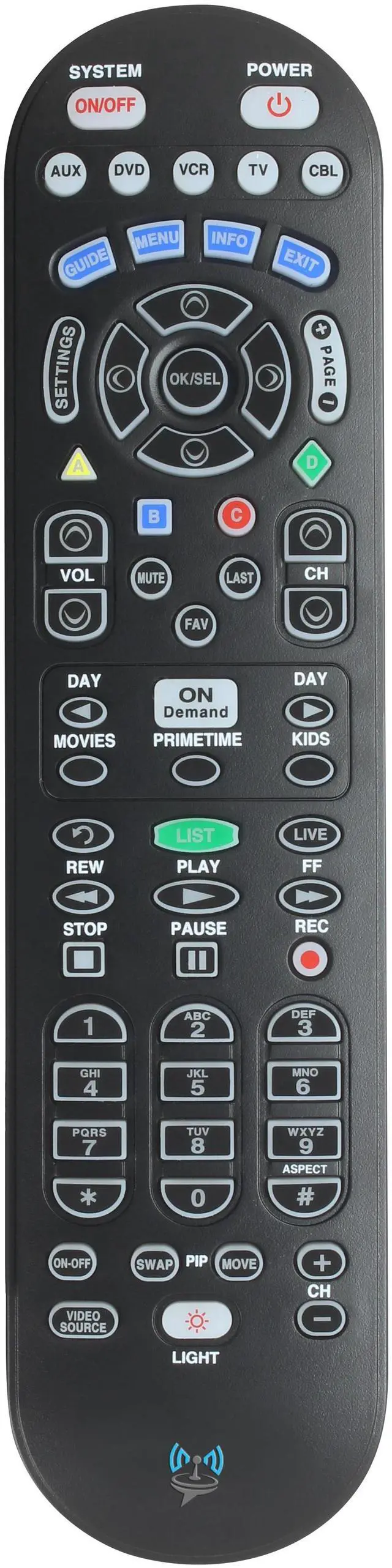 SatelliteSale UR5U-8780L Clikr5 Universal Remote is a direct replacement remote for Spectrum and Charter cable subscribers. Designed for convenience, it allows you to control up to five devices at once, including your cable set-top box, TV, DVD player, and audio equipment. Setup is quick and straightforward, with auto-search and direct code entry options that make pairing with most major brands simple. Featuring clearly labeled buttons, a comfortable design, and Spectrum-approved compatibility, this remote ensures smooth operation of your home entertainment system. The All-Power button and volume lock feature provide extra convenience, while its reliable infrared signal works effectively up to 2030 feet.