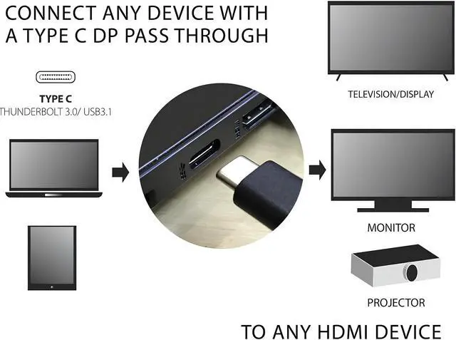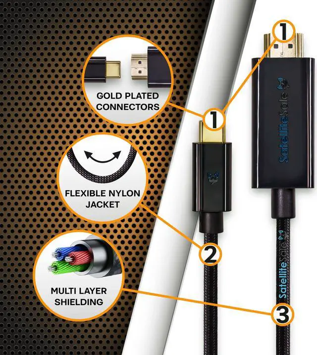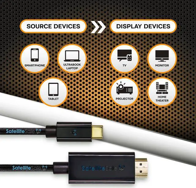 SatelliteSale USB Type C to HDMI Cable Adapter (4K/30Hz, 2K/60Hz) 2160p Black Cord provides ultra high resolution quality and a beautiful, undistorted image. Enhance your productivity, or chill watching your favorite shows from your phone, tablet, and laptop. HDMI connector can be easily plugged into your audio/video devices such as Monitors, Projectors, Soundbars, Smart TVs, Blu-ray Players, and Screens. Every cable we sell is a perfect match for commercial and residential use. We assure the lifetime service of each cable converter to deliver a positive experience to our clients.