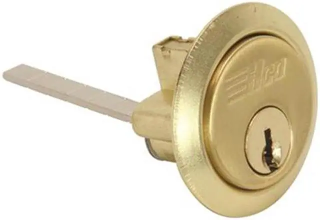 Ilco 605-04-51 Zinc Die Cast With Brass Finish Rim Cylinder Lock, For Doors 1-1/4" - 2-1/4" Thick, With Kwikset KW1 Keyway, specially designed for indoor and outdoor use. This is an ideal replacement for all standard size cylinders for rim deadlocks, night latches, and garage door locks. This cylinder features a 5 pin tumbler, and it is keyed different, with Kwikset KW1 keyway. Box includes a rim cylinder, a trim ring, a mounting plate, and screws.