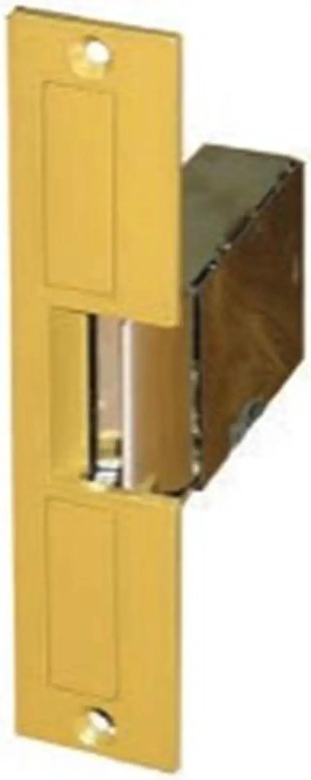 Trine 004 Brass Powder Coated Light Commercial Electric Door Strike 6-1/4" x 1-3/8" With 8 - 16 VAC, specially designed as a replacement installation in wood jambs, for use with locksets with individual deadbolts with a 5/8" throw based on a 1/8" door gap. Deadbolts cannot be released electrically. This strike features 8 - 16 Volt AC, a 6-1/4" x 1-3/8" face plate, deadbolt knockouts top and bottom 1-11/16" x 9/16", a mortise backset of 2-3/4", a cavity depth of 1/2", a cavity width of 9/16", and a cavoty height of 1-1/2".