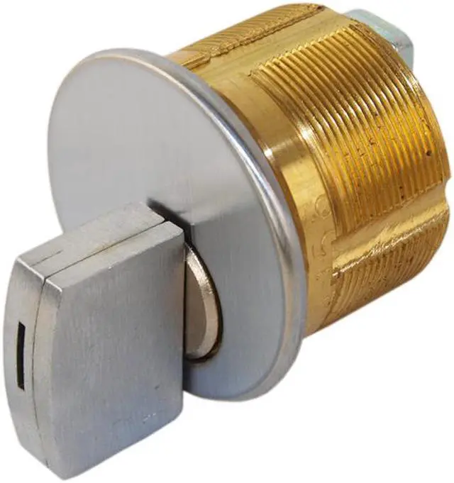 Ilco 41651SC1-26D Satin Chrom US26 15/16" Solid Mortise Captive Turn Knob Cylinder Lock, specially designed for indoor and outdoor use. Ilco Mortise Turn Knob Cylinders are machine made from solid brass bar stock, engineered and manufactured to OEM specifications. This cylinder features a Adams Rite Cam (other cams work too), a 5 pin tumbler, and it has a thumb turn with no key. These Mortise Turn Knob Cylinders will fit into just about any Mortise Lock in the market with a thread size of 1.150 x 32 UNS, a cylinder face with a 1.360 ( 34.5 mm) diameter, and a 1" inch length.