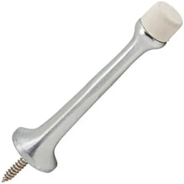 Ives 60A92 Satin Chrome 3-3/4" Aluminum Rigid Door Stop, specially designed to help prevent damage to the wall, with 3-3/4" projection from the wall. This door stop is easy to install, it mounts on the wall, a baseboard, or a door.