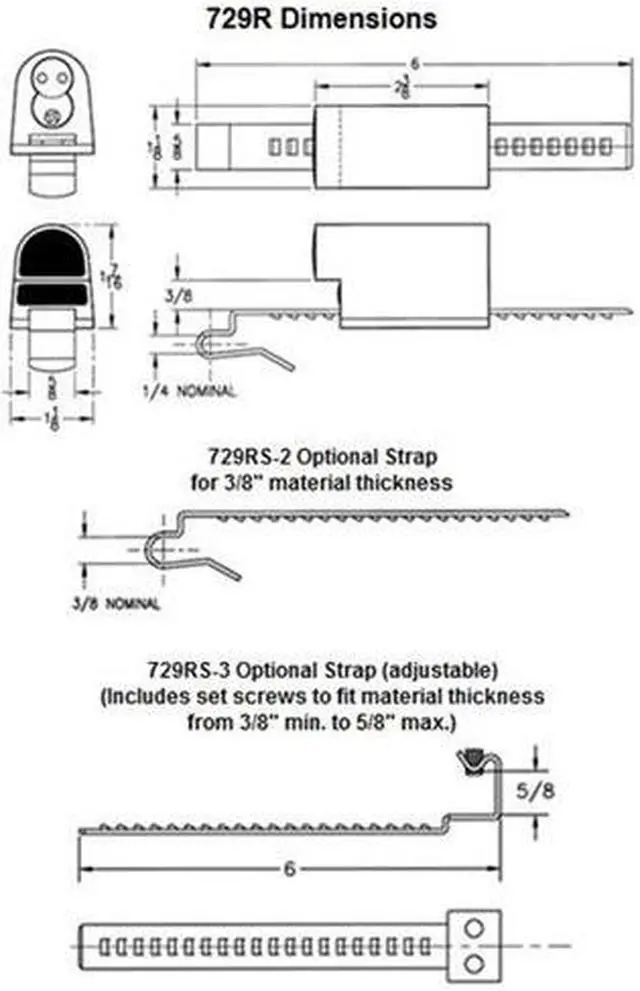 - Included Accessories: 729RS-1 6" strap for 3/16" to 1/4" material thickness, 725-1 spacer to fit 6 or 7 pin cores, and 725-PA plastic thumbturn.