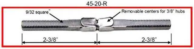Progressive 45-20-R Replacement Steel Swivel Spindle, designed with a 9/32" inch square by 4-3/4" inch long, threaded 3/8"-20 threads per inch With two removable centers. This spindle is an ideal replacement for Surface Mount Mortise Locksets.