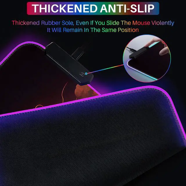 The XL gaming mouse pad RGB has 7 monochromatic lights, 6 gradient modes and one no light state, and the lighting modes (red,green,blue,purple,cyan,yellow,white) are controlled by one click to provide a good visual experience.