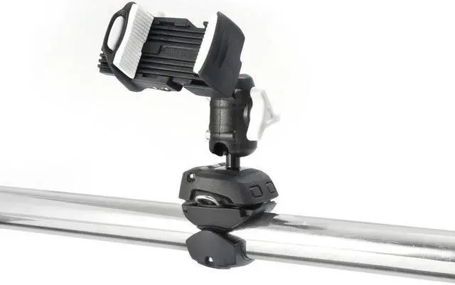 Features: Engineered to withstand high shock loading. Secure mount for smart phones, handheld GPS and other small devices. Base secures to a rail with included hardware.