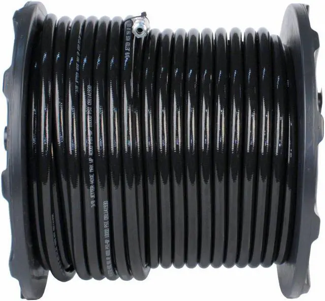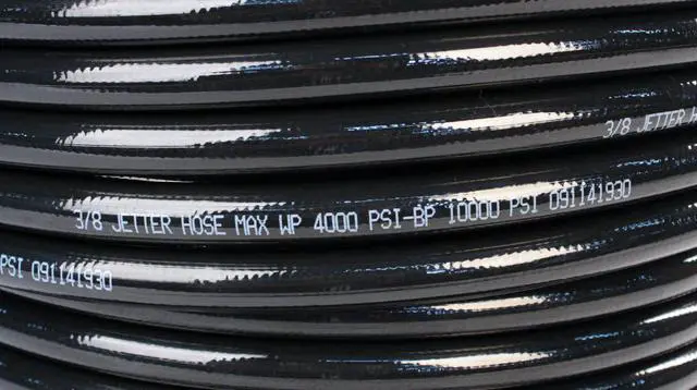 Thermoplastic sewer jetter hose made in the USA for all types of medium and high-pressure jetting applications. Schieffer Sewer Jetter hose uses a reinforcement construction composed of one extra strong layer of textile braid. Schieffer uses a single pass with a twenty-four carrier braider vs two passes with a sixteen carrier braider like most of the competition. Covering the hose in a single pass keeps the layers of braiding closer and tighter together creating a stronger hose than other competitor's hoses using a two-pass process, that is not as tightly wound.