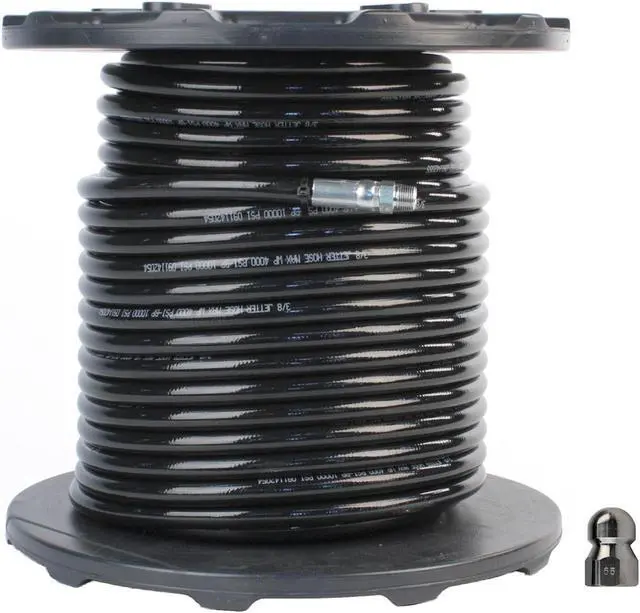 Thermoplastic sewer jetter hose made in the USA for all types of medium and high-pressure jetting applications. Schieffer Sewer Jetter hose uses a reinforcement construction composed of one extra strong layer of textile braid. Schieffer uses a single pass with a twenty-four carrier braider vs two passes with a sixteen carrier braider like most of the competition. Covering the hose in a single pass keeps the layers of braiding closer and tighter together creating a stronger hose than other competitor's hoses using a two-pass process, that is not as tightly wound.