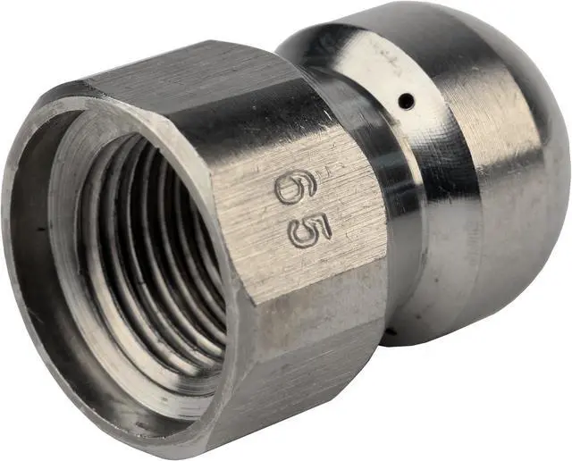 Stainless Steel Button Nose 3/8" Female 6.5 Orifice Laser Fixed Sewer Jetter Nozzle 5000 PSI