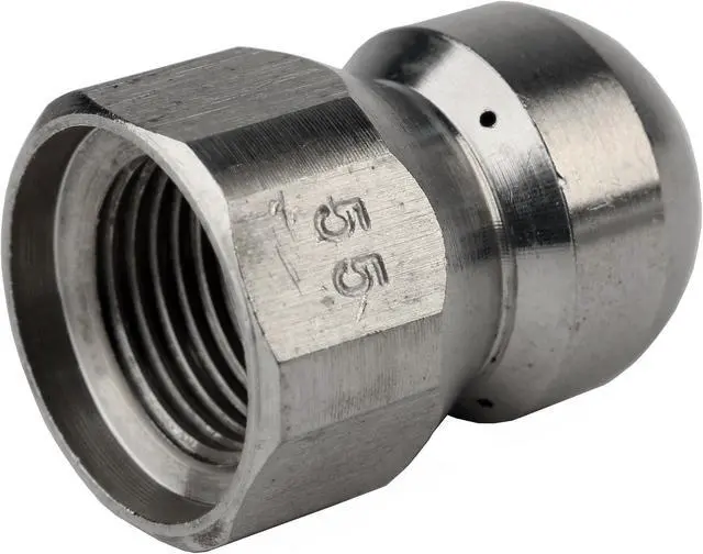 Stainless Steel Button Nose 3/8" Female 5.5 Orifice Laser Fixed Sewer Jetter Nozzle 5000 PSI