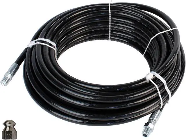 Schieffer 1/4in. x 200ft. 4400 PSI Thermoplastic Sewer Jetter Hose & 6.5 Orifice Button Nose Nozzle