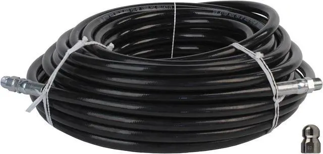 Thermoplastic sewer jetter hose made in the USA for all types of medium and high-pressure jetting applications. Schieffer Sewer Jetter hose uses a reinforcement construction composed of one extra strong layer of textile braid. Schieffer uses a single pass with a twenty-four carrier braider vs two passes with a sixteen carrier braider like most of the competition. Covering the hose in a single pass keeps the layers of braiding closer and tighter together creating a stronger hose than other competitor's hoses using a two-pass process, that is not as tightly wound.