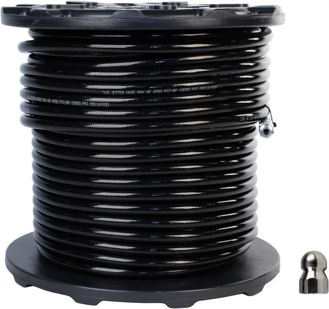 Schieffer 3/8in. x 300ft. 4000 PSI Thermoplastic Sewer Jetter Hose & 4.5 Orifice Button Nose Nozzle