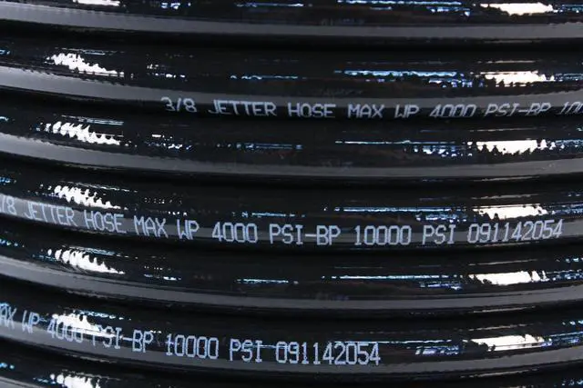 Thermoplastic sewer jetter hose made in the USA for all types of medium and high-pressure jetting applications. Schieffer Sewer Jetter hose uses a reinforcement construction composed of one extra strong layer of textile braid. Schieffer uses a single pass with a twenty-four carrier braider vs two passes with a sixteen carrier braider like most of the competition. Covering the hose in a single pass keeps the layers of braiding closer and tighter together creating a stronger hose than other competitor's hoses using a two-pass process, that is not as tightly wound.