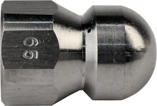 Stainless Steel Button Nose 3/8" Female 6.5 Orifice Laser Fixed Sewer Jetter Nozzle 5000 PSI