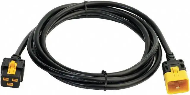 Power Cord, Wire Size 14 AWG, Number of Conductors 3, Jacket Material Rubber/Plastic, Jacket Color Black, Connection Type Locking IEC-320 C20, Cord Length 10 ft, Voltage 120V AC, Plug Configuration Locking IEC-320 C19, Max. Amps 16.0 A, Cord Shape Round, Temp. Rating 32 Degrees to 167 Degrees F, Trade Designation SJT, Nominal Outside Dia. 0.38 in