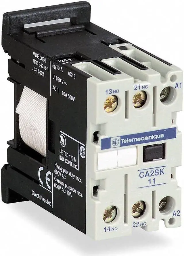 IEC Control Relay, Current Rating 10 A, Contact Form 2NO, Contact Rating (DC) 2 A @ 125/250/600V, Coil Voltage 240V AC, Contact Rating (AC) 10 A @ 120/240/480/600V, Relay Style IEC, Electrical Connection Screw Clamp, Mounting Style DIN Rail, Power Consumption 4.5 VA, IP Rating IP2X, Compatible with Series TeSys SK Mini Control Relays, Maximum Operating Temperature 122 Degrees F, Frequency 50/60 Hz, Body Depth 2.19 in, Body Height 2.2 in, Body Width 1.06 in, Contact Material Silver Nickel. This item has been restricted from sale in the following state (s): []