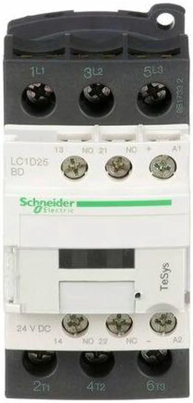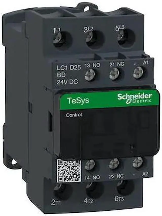 IEC Magnetic Contactor, Auxiliary Contact Form 1NO/1NC, NEMA Enclosure Rating No Enclosure, NEMA Size Not Applicable, Coil Voltage 24V DC, Number of Poles 3, Full Load Current - Inductive 25 A, Full Load Current - Resistive 40 A, Reversing Capability Non-Reversing, Overall Height 3.35 in, Overall Width 1.77 in, Terminal Connection Type Screw Clamp Terminals, Mounting Style DIN Rail, Plate, Series TeSys Deca, Number of Auxillary Contacts 2, Contactor Style IEC. This item has been restricted from sale in the following state (s): []