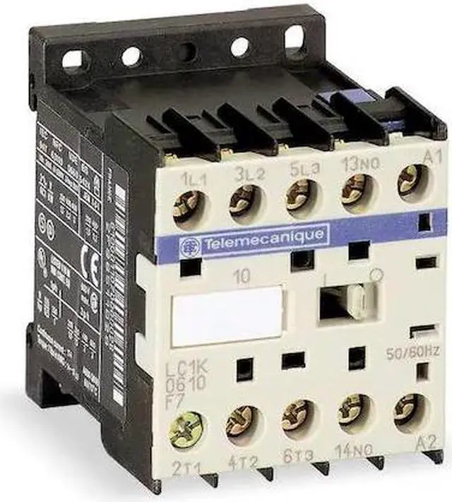 Miniature IEC Magnetic Contactor, Auxiliary Contact Form 1NO, NEMA Enclosure Rating No Enclosure, NEMA Size Not Applicable, Coil Voltage 230-240V AC, Number of Poles 3, Full Load Current - Inductive 6 A, Full Load Current - Resistive 15 A, Reversing Capability Non-Reversing, Overall Height 2.28 in, Overall Width 1.77 in, Terminal Connection Type Screw Clamp Terminals, Mounting Style DIN Rail, Plate, Series TeSys K, Number of Auxillary Contacts 1, Contactor Style IEC. This item has been restricted from sale in the following state (s): []