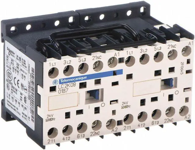 Miniature IEC Magnetic Contactor, Auxiliary Contact Form 1NC, NEMA Enclosure Rating No Enclosure, NEMA Size Not Applicable, Coil Voltage 110V AC, Number of Poles 3, Full Load Current - Inductive 9 A, Full Load Current - Resistive 20 A, Reversing Capability Reversing, Overall Height 2.28 in, Overall Width 3.54 in, Terminal Connection Type Screw Clamp Terminals, Mounting Style DIN Rail, Plate, Series TeSys K, Number of Auxillary Contacts 1, Contactor Style IEC. This item has been restricted from sale in the following state (s): []