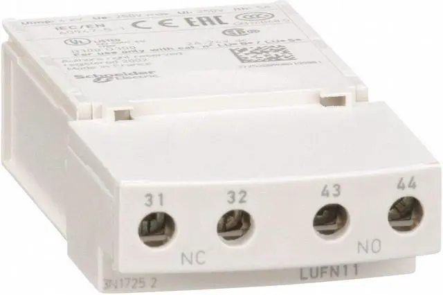 Auxiliary Contact, Current AC 5 A, Number of Contacts 2, Mounting Front, Number of Normally Open Contacts 1, Maximum Voltage Rating 250V AC, 250V DC, Number of Normally Closed Contacts 1, Compatible with Series TeSys, TeSys Ultra, Compatible Grainger Part Number 48P499, 48P503, 5AB63, 5AB64, Compatible Manufacturer Part Number LUB12, LUB120, LUB32, LUB320, LUB38, LUB380. This item has been restricted from sale in the following state (s): []