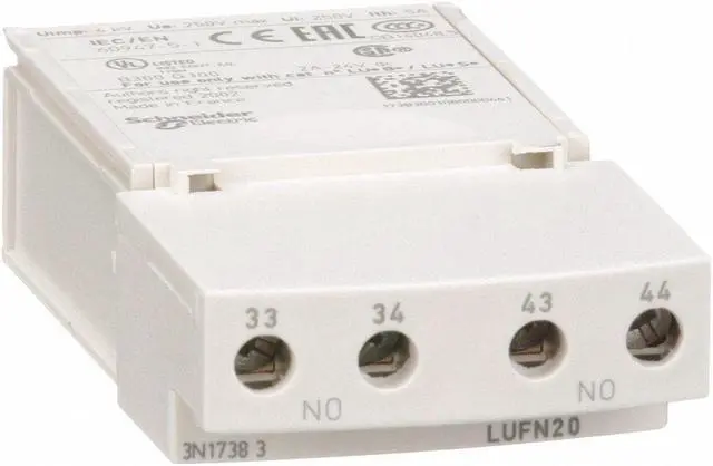 Auxiliary Contact, Current AC 5 A, Number of Contacts 2, Mounting Front, Number of Normally Open Contacts 2, Maximum Voltage Rating 250V AC, 250V DC, Number of Normally Closed Contacts 0, Compatible with Series TeSys, TeSys Ultra, Compatible Grainger Part Number 48P499, 48P503, 5AB63, 5AB64, Compatible Manufacturer Part Number LUB12, LUB120, LUB32, LUB320, LUB38, LUB380. This item has been restricted from sale in the following state (s): []