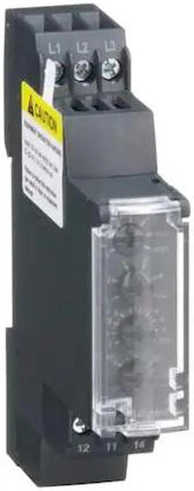 Phase Monitor Relay, Base Shape Square, Contact Form SPDT, Contact Rating (AC) 3 A @ 250V, 5 A @ 24V, Contact Rating (DC) 1.00 A @ 24V, Current Rating 5 A, Flat Pin Width Not Applicable, Input Voltage 208 to 480V AC, Monitored Parameters Asymmetry, Overvoltage, Phase Failure, Phase Sequence, Undervoltage, Number of Pins 6, Restart Auto, Restart Time Delay 1.5 sec, IP Rating IP30, Mounting Style DIN Rail, Body Depth 2.84 in, Body Height 3.54 in, Body Width 0.69 in.