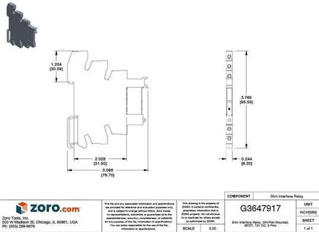 Slim Interface Relay, Base Type Square, Coil Voltage 12V DC, Contact Form SPDT, Current Rating 6 A, Electrical Connection Screw Connector, Flat Pin Width Not Applicable, Number of Pins 5, Pin Shape Flat, Sealing Enclosed, Status Indicator LED Indicator, Contact Rating (AC) 6 A @ 250V, Contact Rating (DC) 6 A @ 28V, Mounting Style DIN Rail, Push-To-Test Method No Button, Body Depth 3.74 in, Body Height 3.09 in, Body Width 0.24 in, Contact Material Silver Alloy. This item has been restricted from sale in the following state (s): []