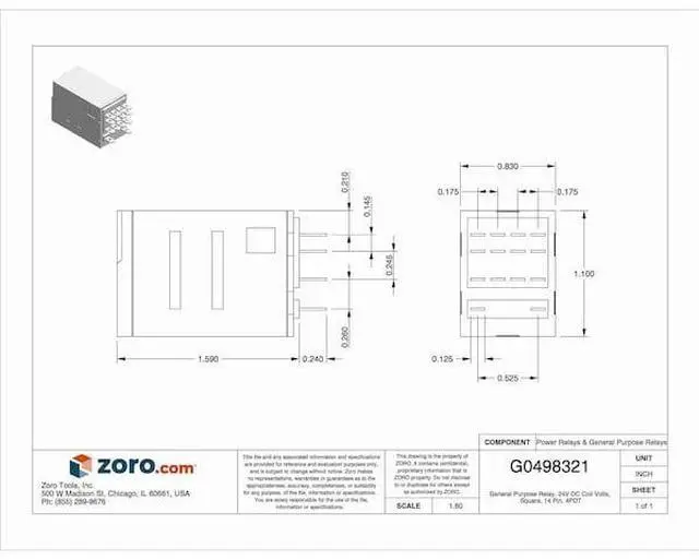 General Purpose Relay, Base Shape Square, Coil Voltage 24V DC, Contact Form 4PDT, Current Rating 6 A, Electrical Connection Quick-Connect, Flat Pin Width 0.09 in, Number of Pins 14, Pin Shape Flat, Sealing Enclosed, Status Indicator LED Indicator, Mechanical Flag, Contact Rating (AC) 6 A @ 250V, Contact Rating (DC) 6 A @ 28V, Horsepower @ 120V AC Not Rated, Horsepower @ 240V AC Not Rated, Mounting Style Plug-In, Push-To-Test Method Lockable, Body Depth 1.57 in, Body Height 1.06 in.
