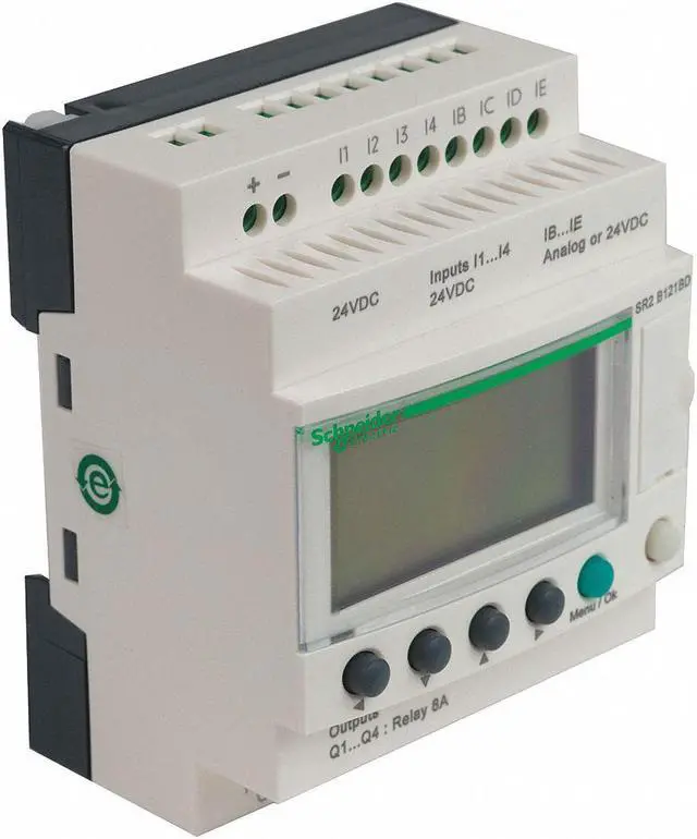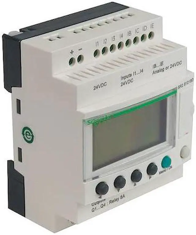 Logic Relay, Input Voltage 100 to 240V AC, Output Type Relay, 8.0 A Amps, Number of Inputs 8, Number of Outputs 4, Counters 16, Timers 16, Yes Clock, LCD Display, Depth 2.34 in, Height 4.24 in, Width 2.8 in