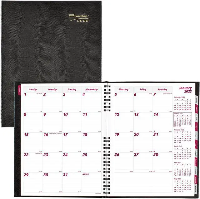 Ruled daily blocks for more legible entries. Textured hard cover with twin wire binding lies completely flat or folds back. Double-sided pocket for keeping loose papers. Sturdy hard cover makes book archivable. Dated/Undated: Dated; Calendar Format: Monthly; Page Format: One Month per Two-Page Spread; Edition Year: 2022 to 2024.