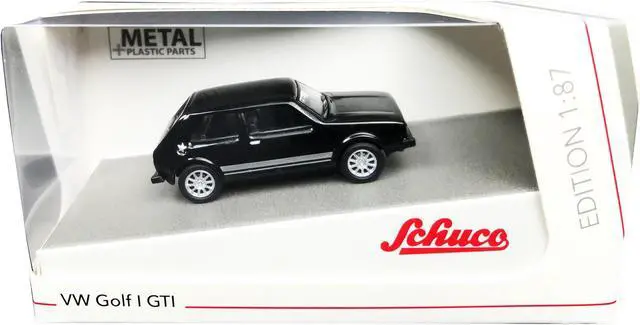 Brand new 1/87 (HO) scale diecast car model of Volkswagen Golf I GTI Black with Silver Stripes die cast model car by Schuco.