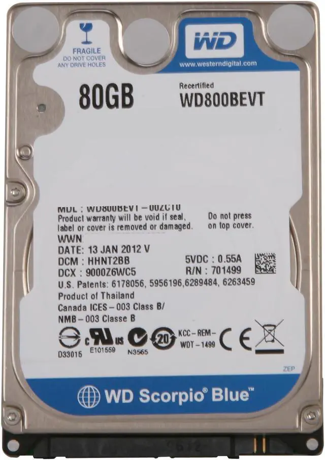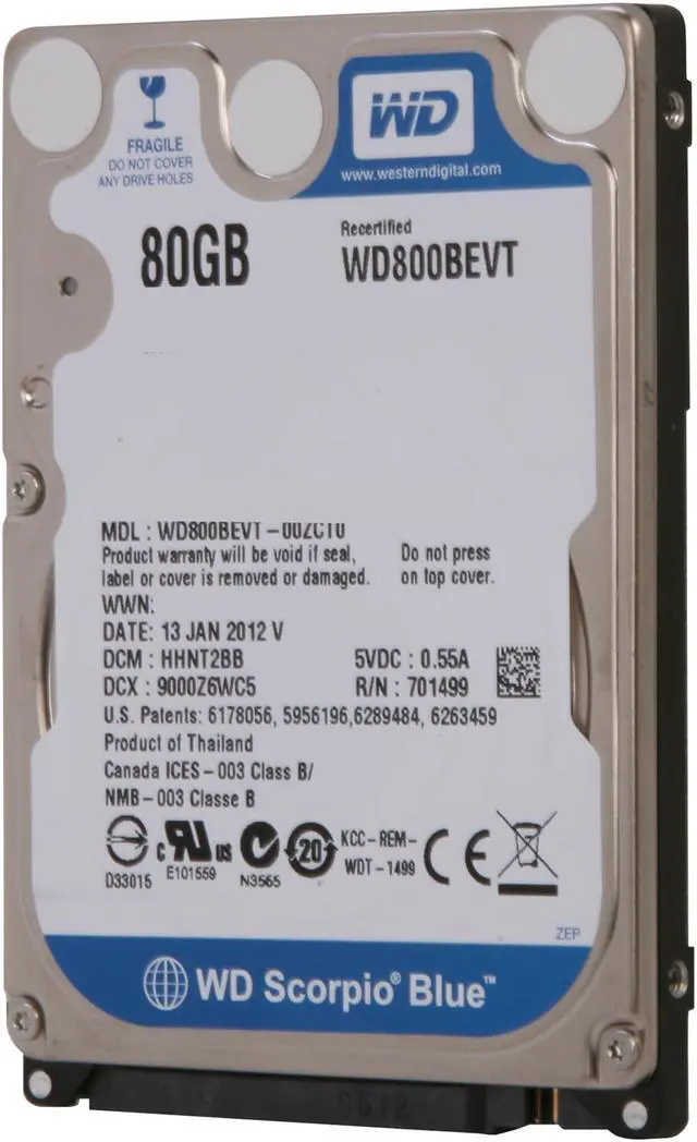 WD Scorpio Blue WD800BEVT 80GB 5400 RPM 8MB Cache SATA 3.0Gb/s 2.5" Internal Notebook Hard Drive Bare Drive