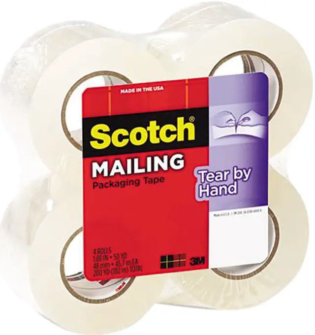 Scotch 38424 Tear-By-Hand Packaging Tape, 1.88" x 50 yards, 1-1/2" Core, Clear, 4/Box