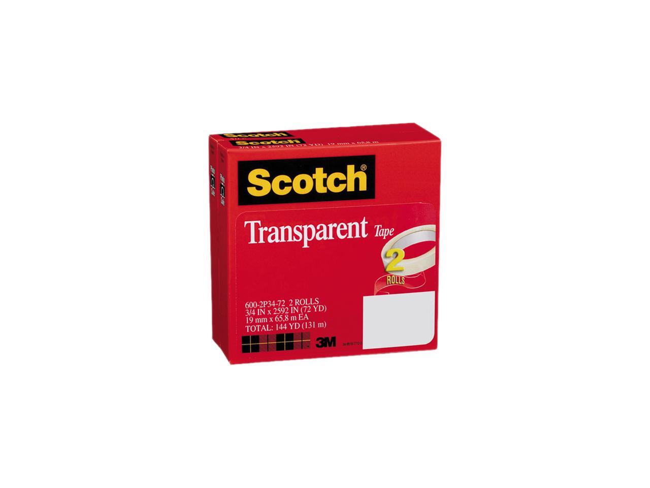 Scotch 600-2P34-72 Transparent Tape 600-2P34-72, 3/4" x 2592", 3" Core, Transparent, 2 Rolls