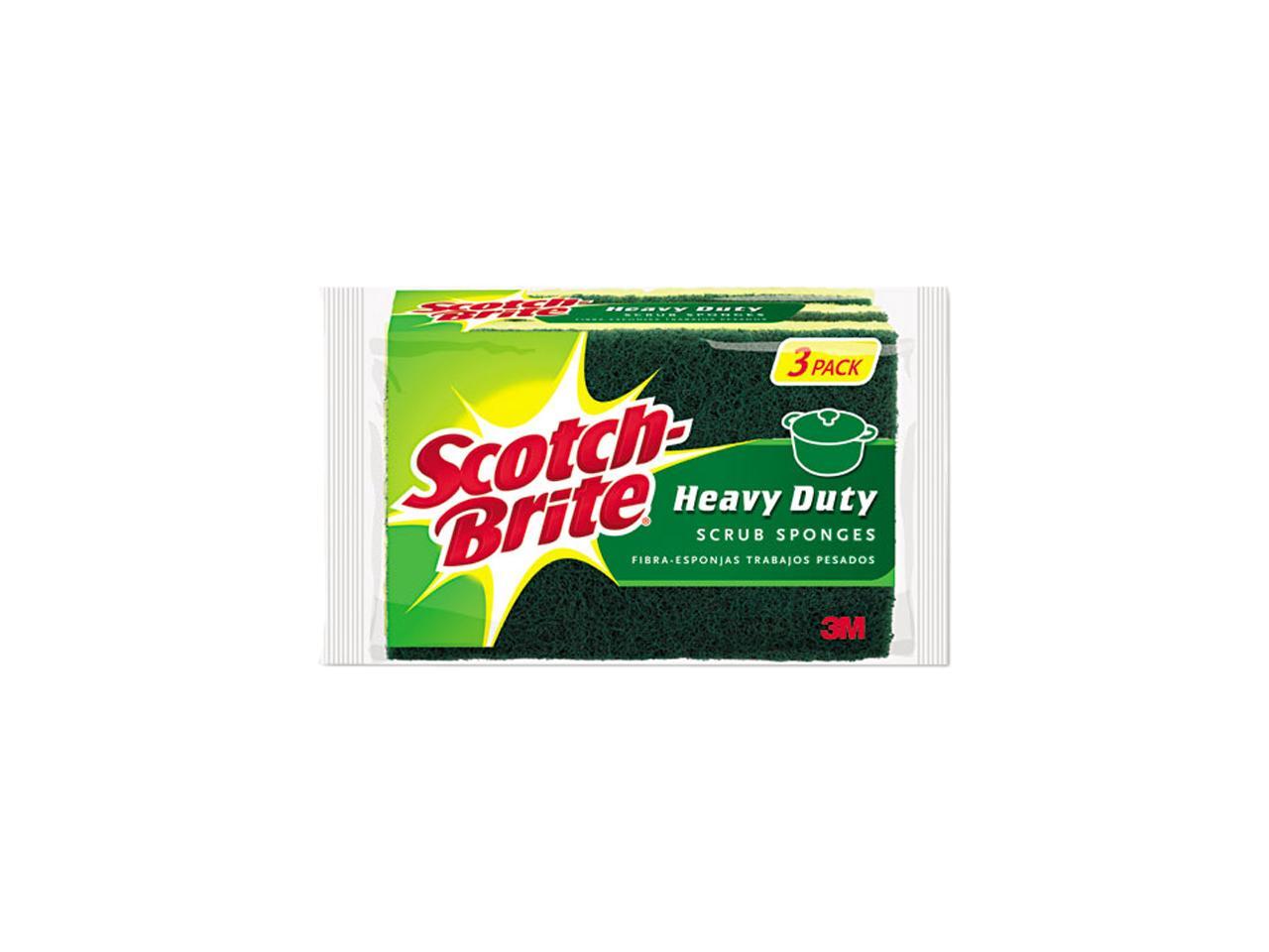 Scotch-Brite HD-3 Heavy-Duty Scrub Sponge, 4 1/2 x 2 7/10 x 6/10" Green/Yellow, 3/Pack