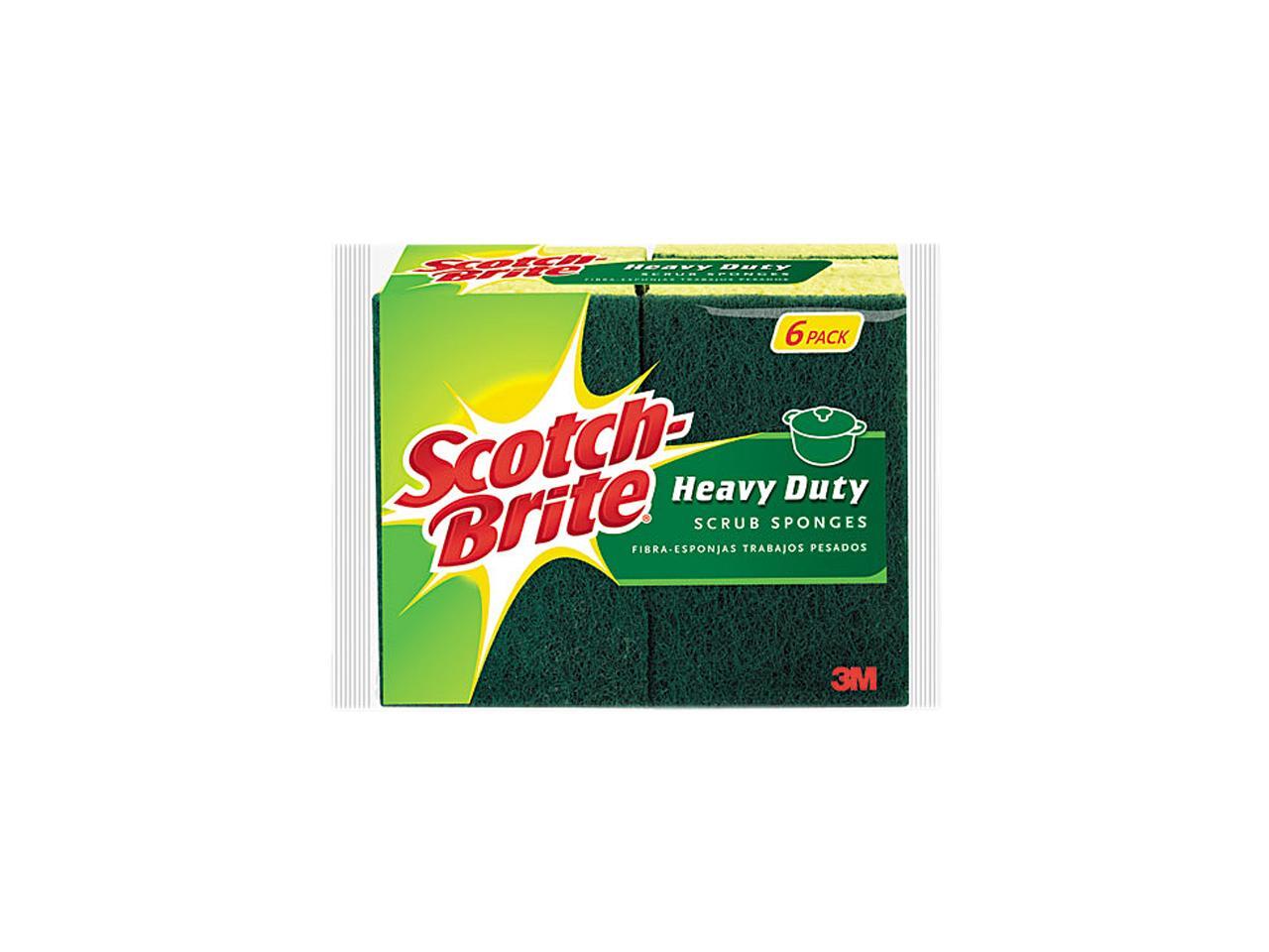 Scotch-Brite 426 Heavy-Duty Scrub Sponge, 4 1/2" x 2 7/10" x 6/10", Green/Yellow, 6/Pack